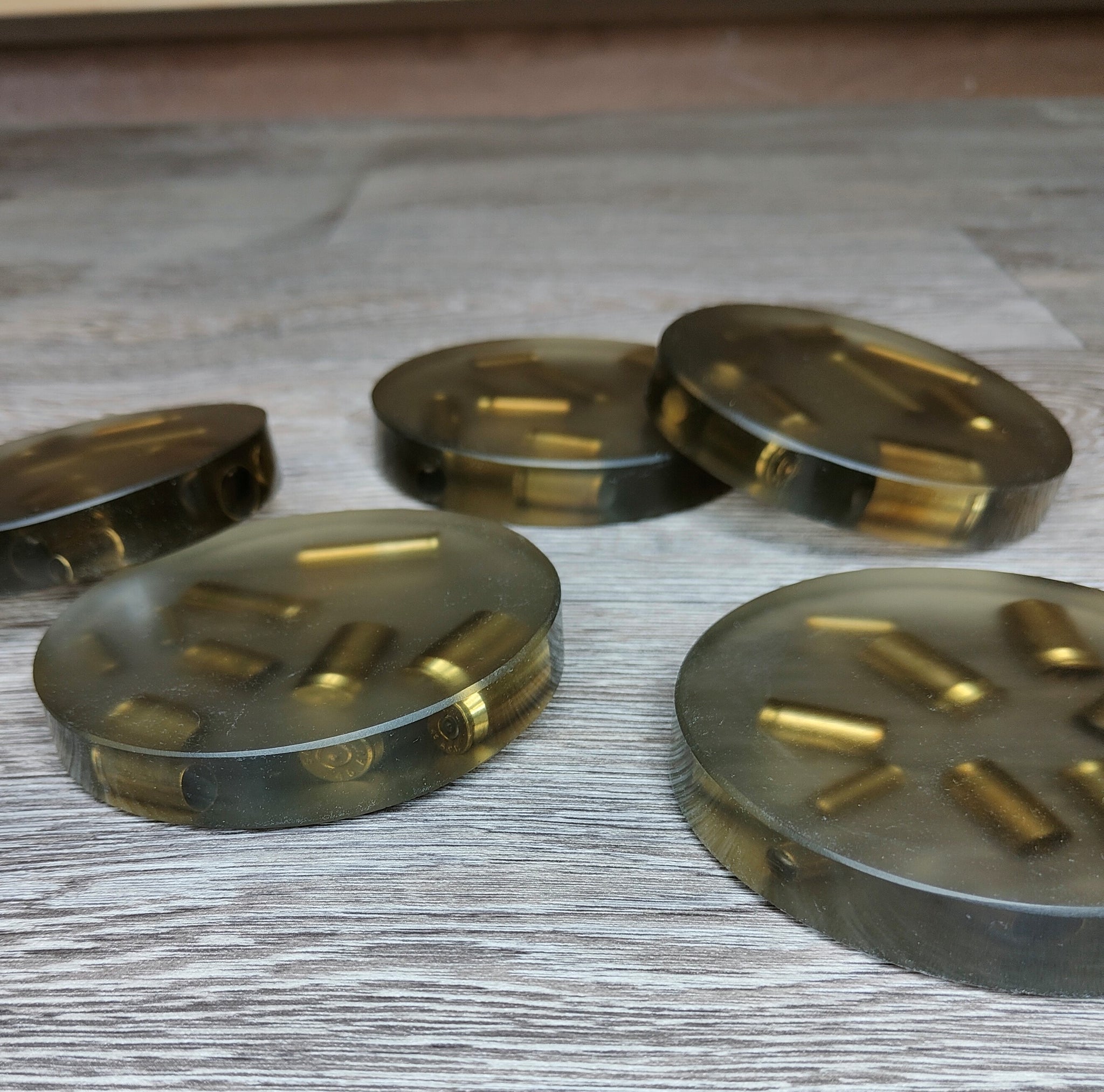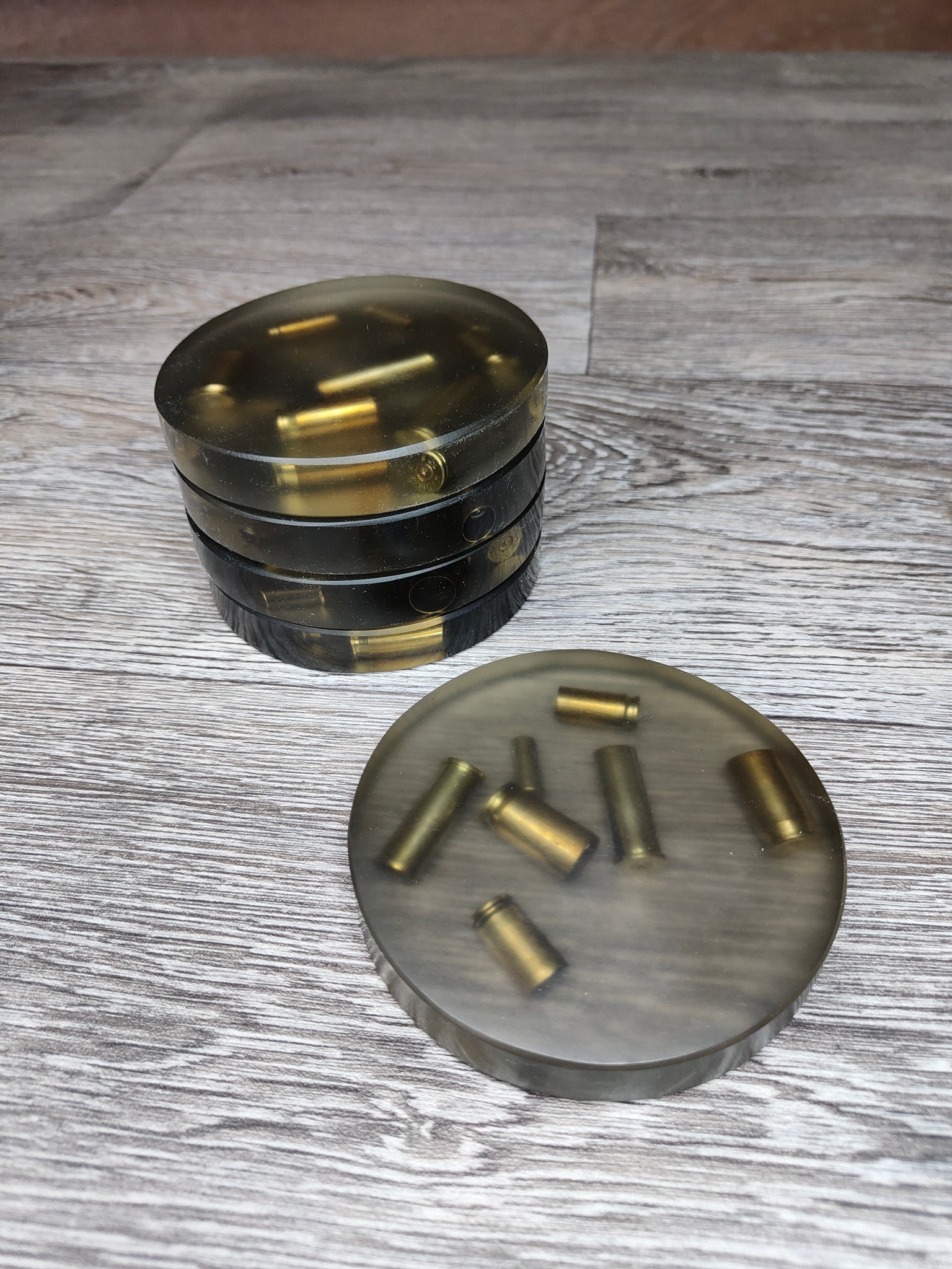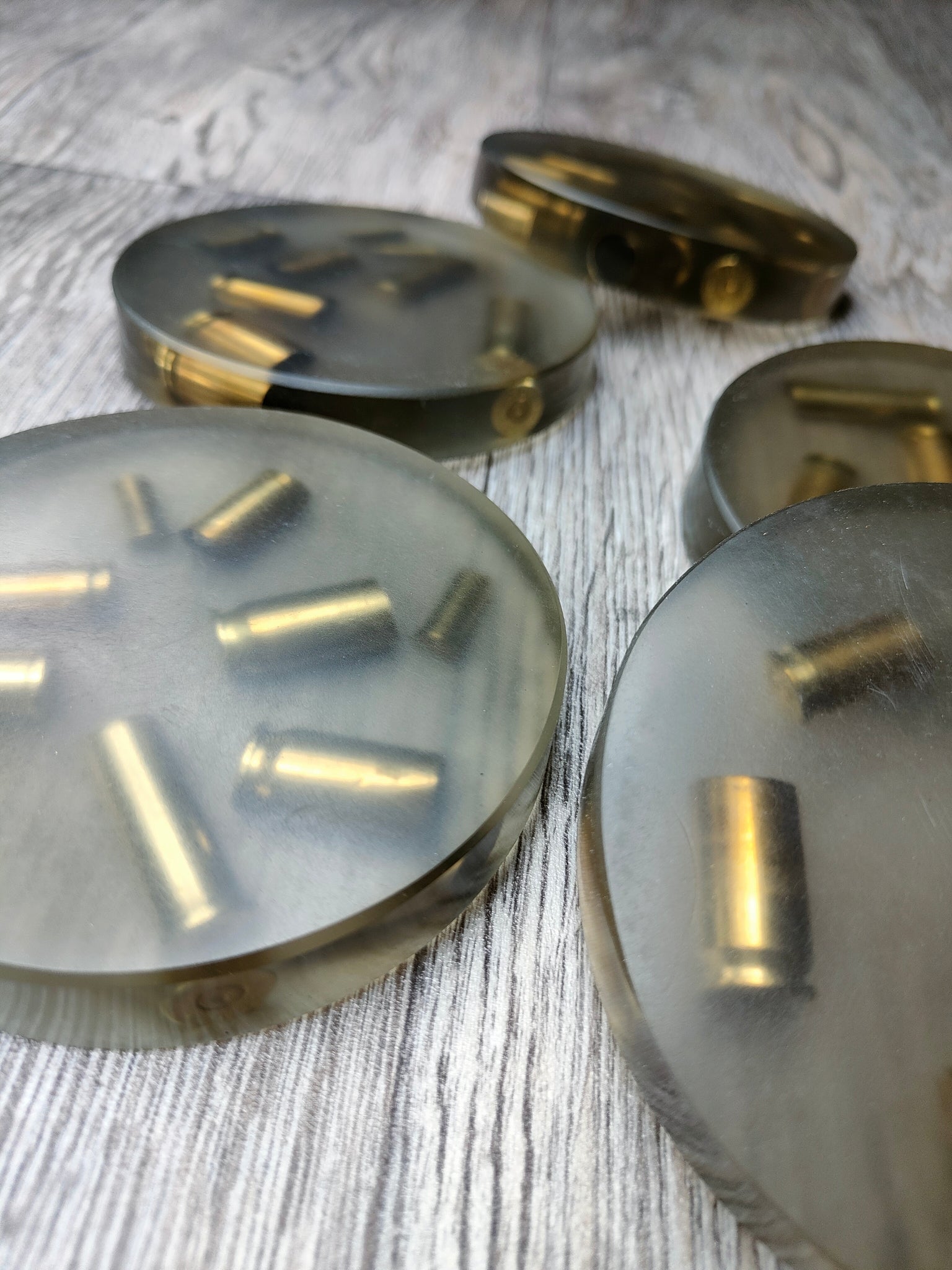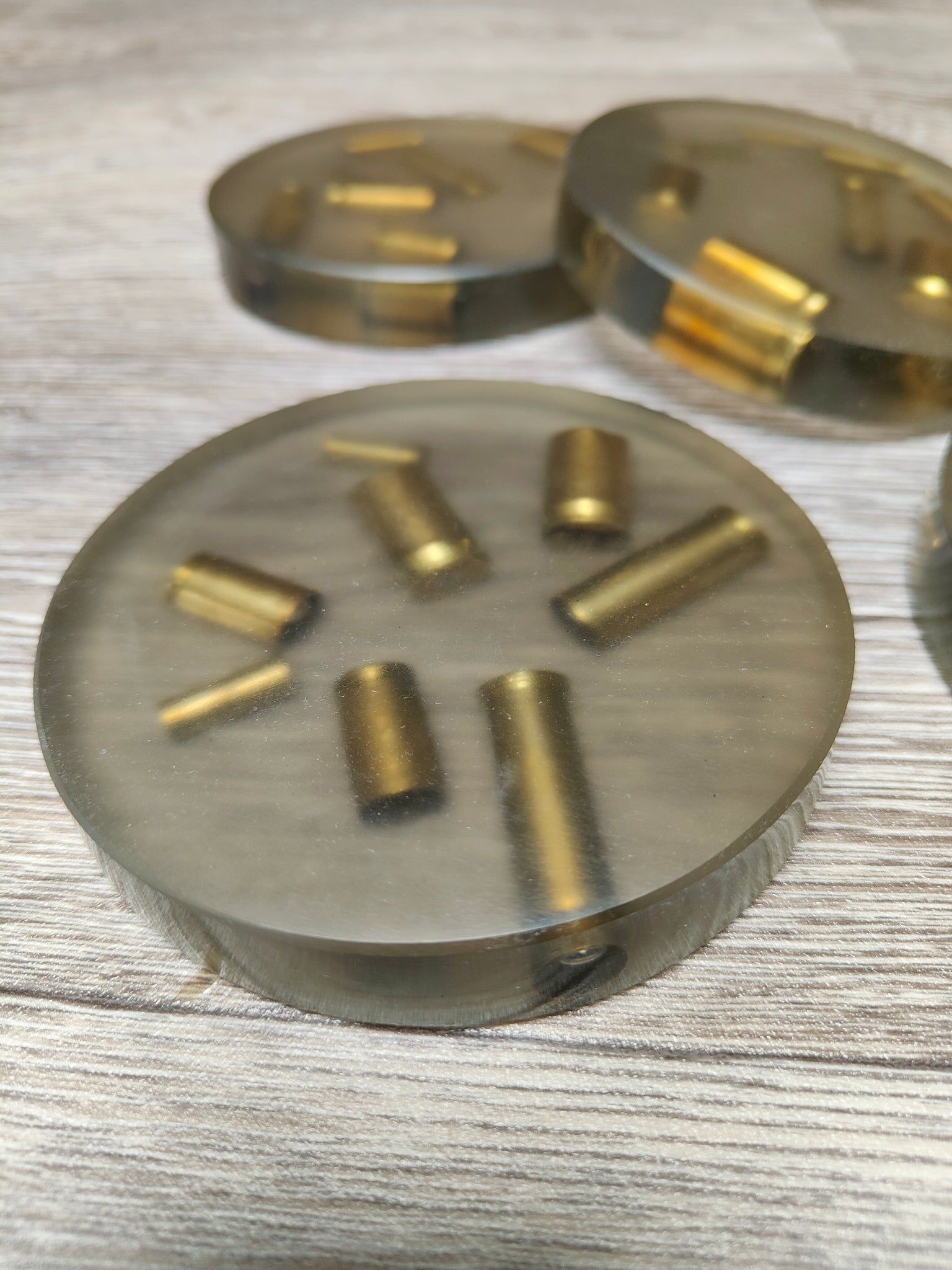 résine anthracite, douilles dorées effet fumé semi-transparence