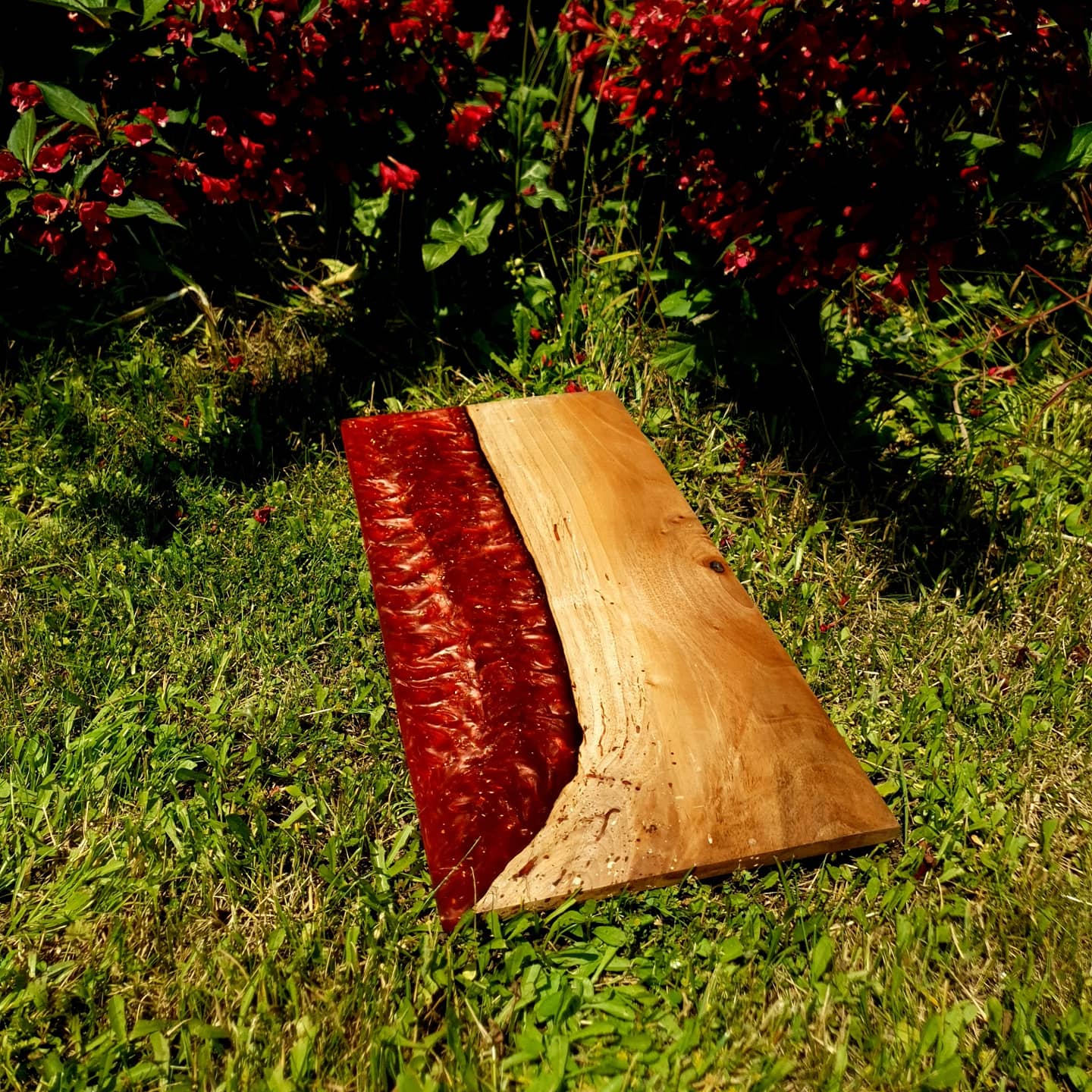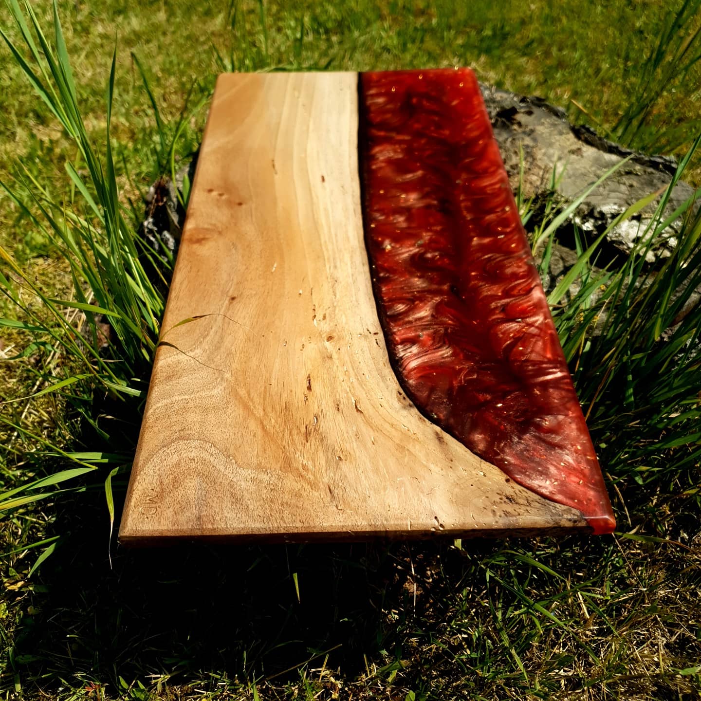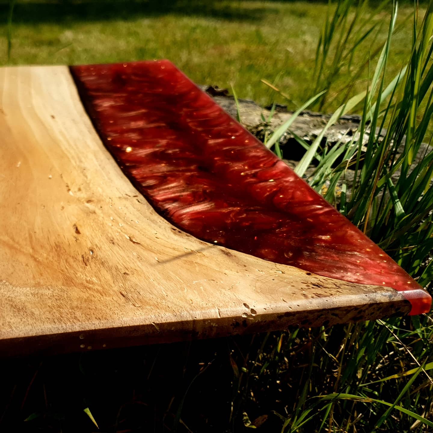 Quant à la résine epoxy rouge cherry bomb avec c'est éclats de feuille d'or pour encore plus de nuances une pure merveille.